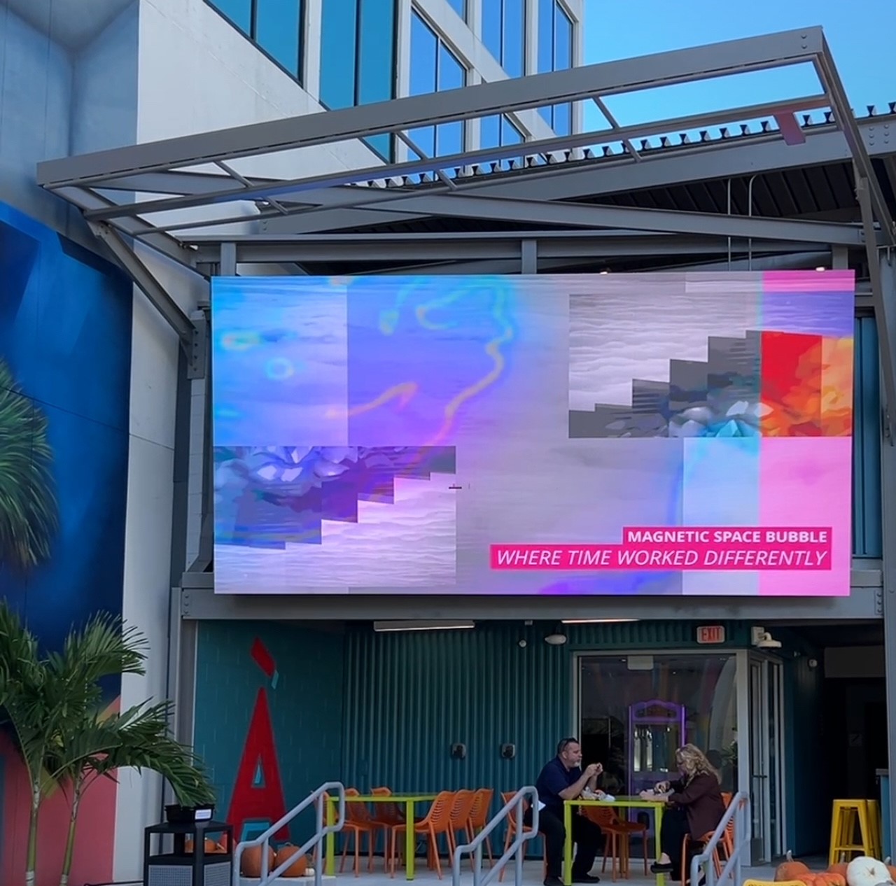 To ensure safe and comfortable viewing in the public setting, artworks may not include bright white or predominantly white backgrounds, as these can produce excessive glare for drivers and nearby residents. Artists are encouraged to use darker or more balanced color palettes suitable for outdoor nighttime display